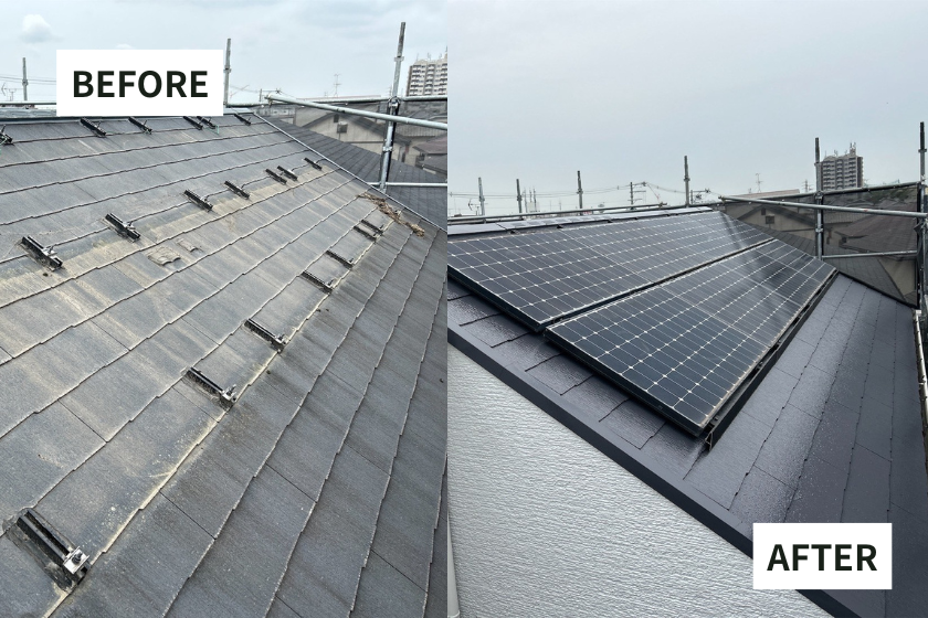 いる弊社だからこそ、パネルをいったん外して全面屋根塗装、再度パネル設置ができます。パネルの周り